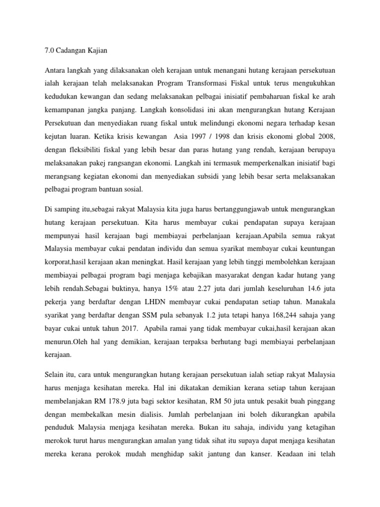 Cadangan Mengurangkan Hutang Negara